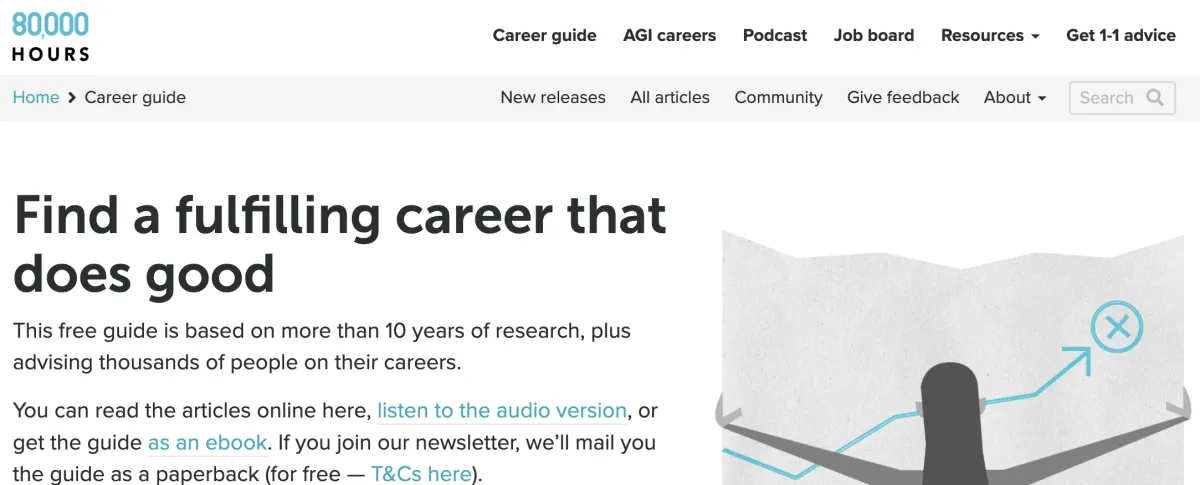 This is where 80,000 Hours comes in. Their mission is to help you figure out how to use your working hours in the most impactful way possible. Whether you’re just starting out, considering a career change, or looking to maximize your current role’s positive effect, 80,000 Hours offers research-backed guidance, practical advice, and personalized support. They focus on helping you align your skills, interests, and values with opportunities that can make a real difference—whether that’s through direct work, policy influence, research, or other paths.